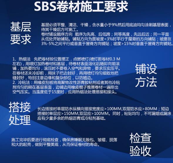 防水补漏卷材是南海防水补漏公司经常用到的一种补漏材料,其中有SBS改性沥青防水卷材,有多种规格型号,另有铝箔面,黄沙面,石英面,片岩面,彩砂面,均可根据客户要求定做。我司产品由全新料沥青为原料,产品柔软,有韧性,抗腐蚀,寿命长。